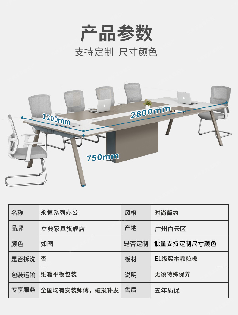 会议桌洽谈桌椅组合长桌子工作台简约现代大小型条形6/8/10/人位 数量