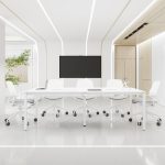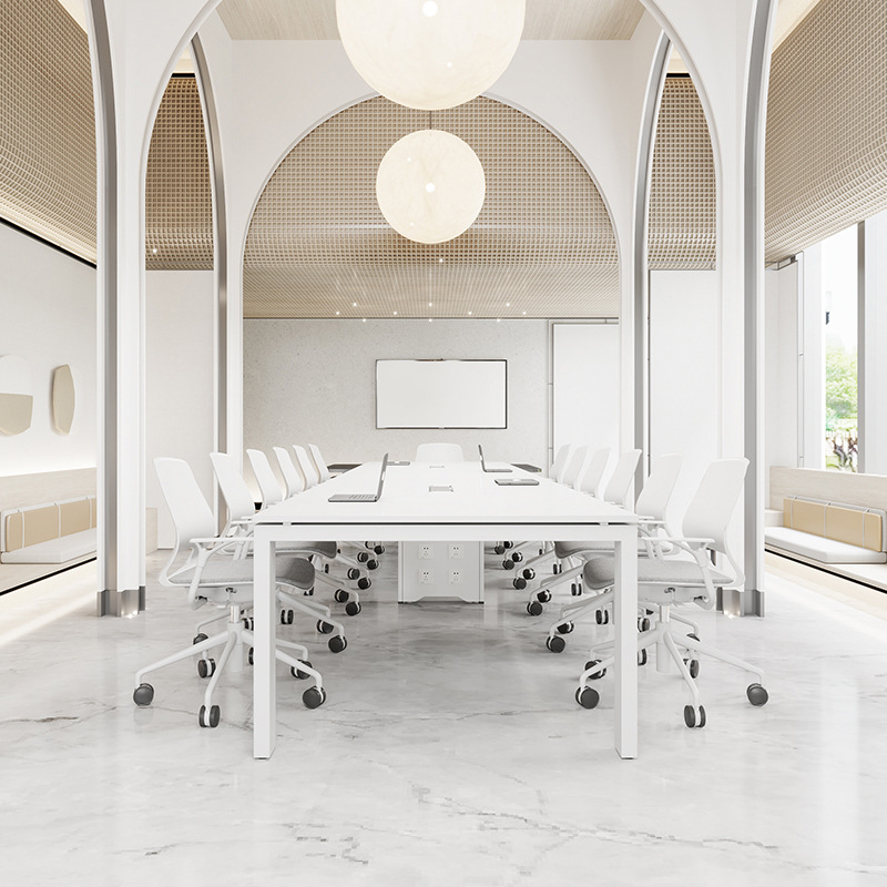 会议桌长桌办公桌椅组合简约现代洽谈6/8人大小型白色会议室桌子