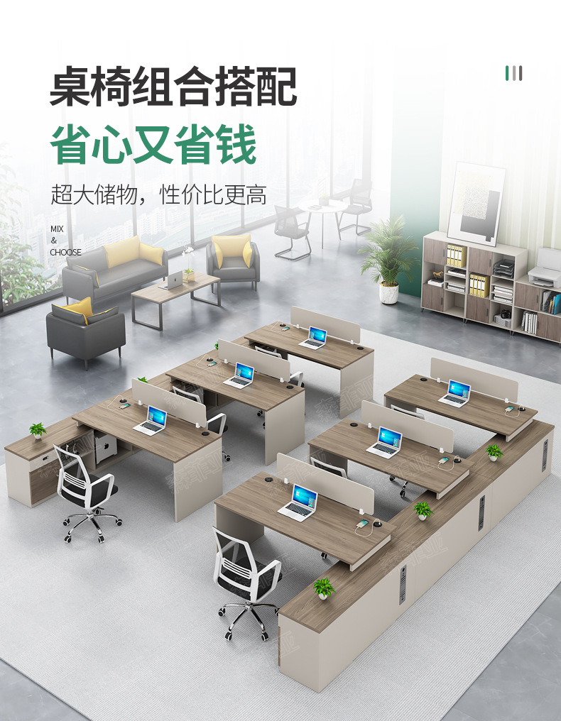 办公桌椅组合套装6人卡座屏风双人员工财务办公桌子 办公室电脑桌