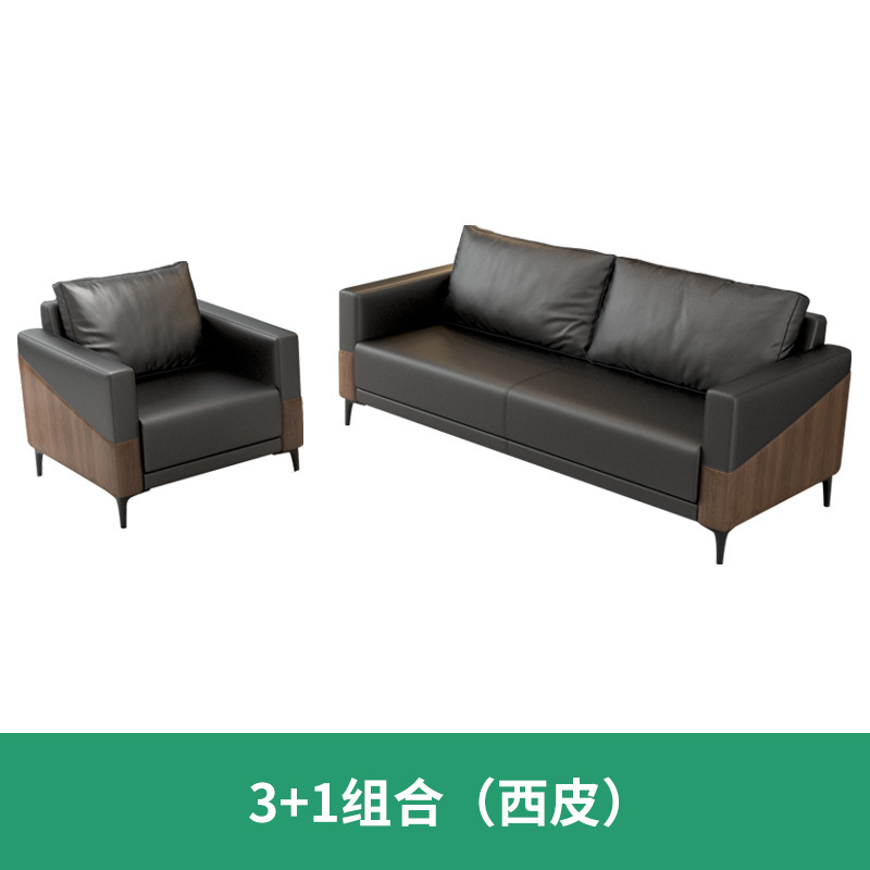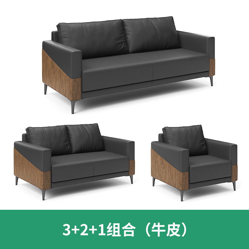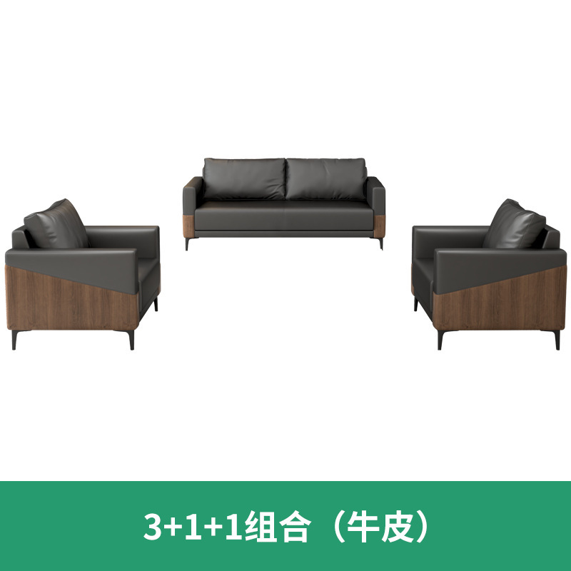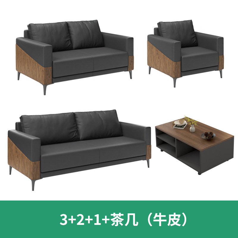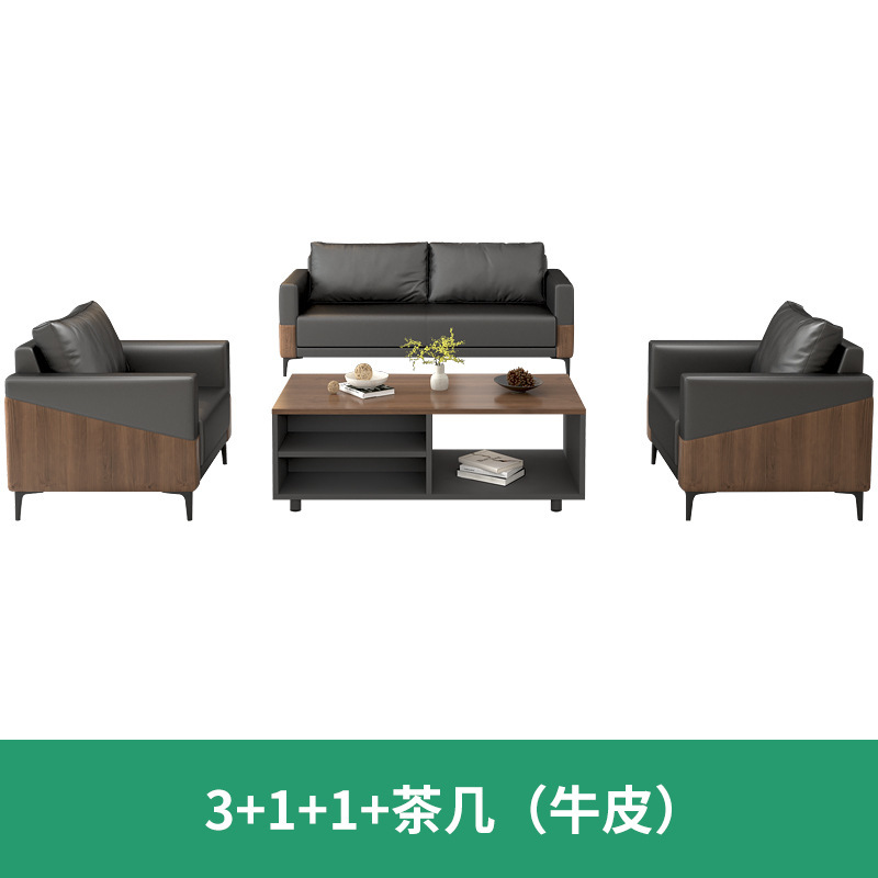 办公室沙发真皮简约现代休息区接待会客商务洽谈沙发茶几组合套装