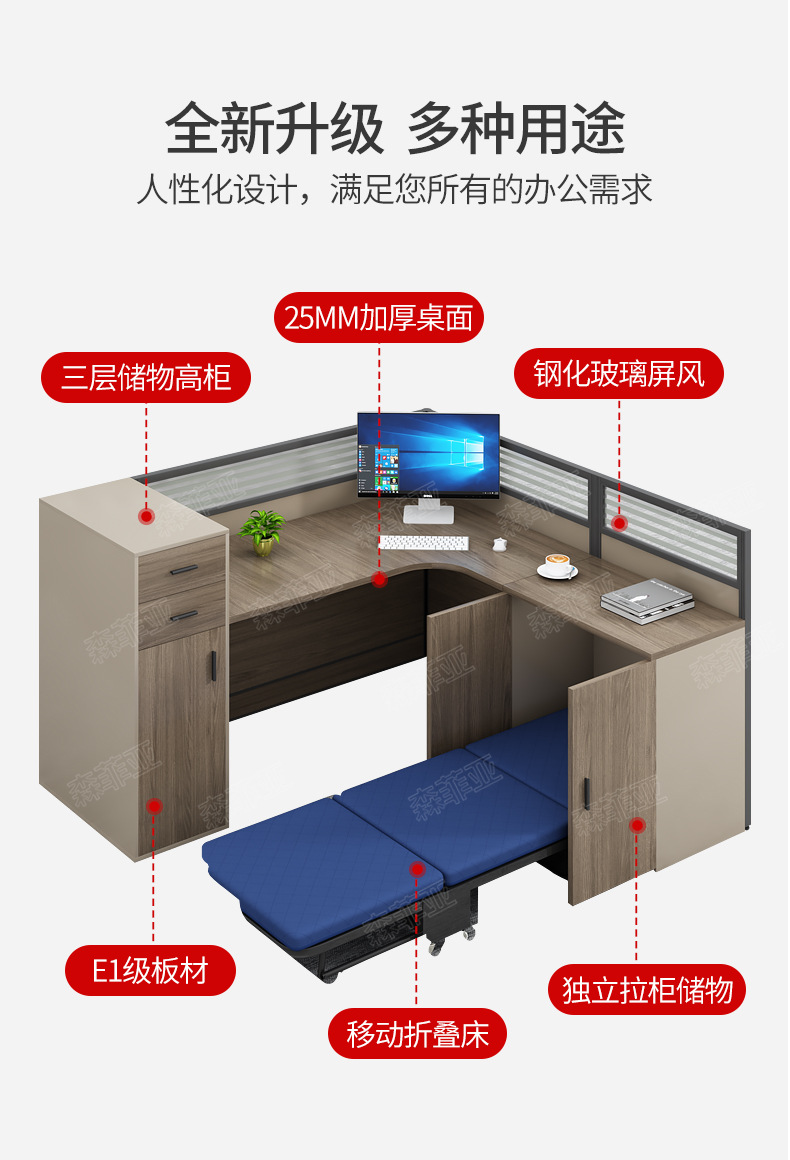 办公桌带休息床可折叠卡座屏风工位四人位员工桌椅办公桌子办公室 数量