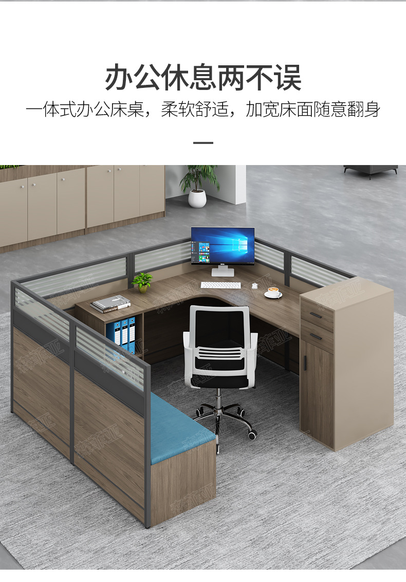 办公桌带休息床可折叠卡座屏风工位四人位员工桌椅办公桌子办公室