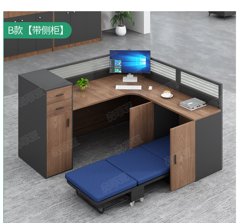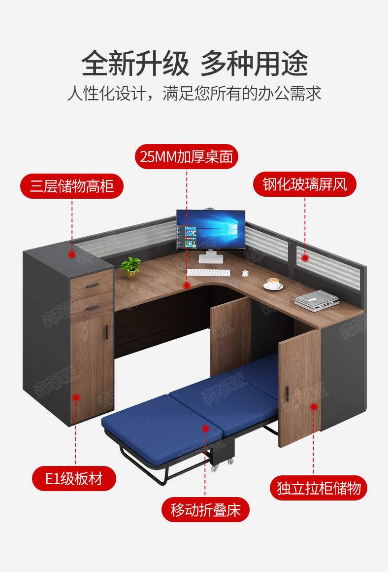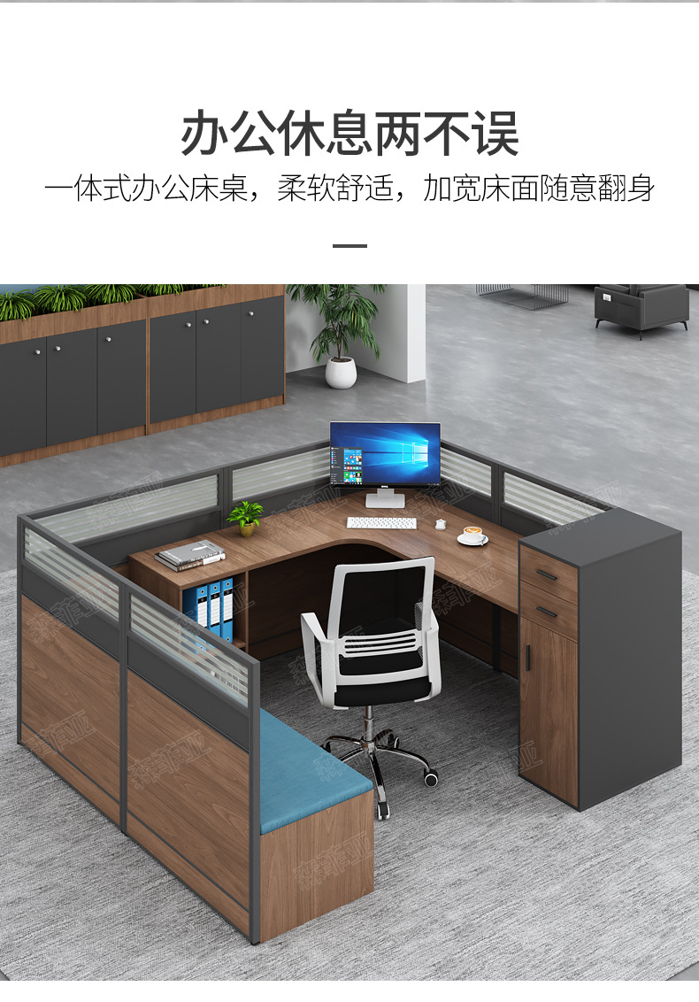 办公桌带折叠午休休息床 员工桌椅组合 办公室家具屏风职员桌卡座