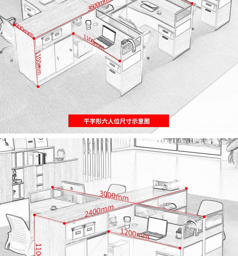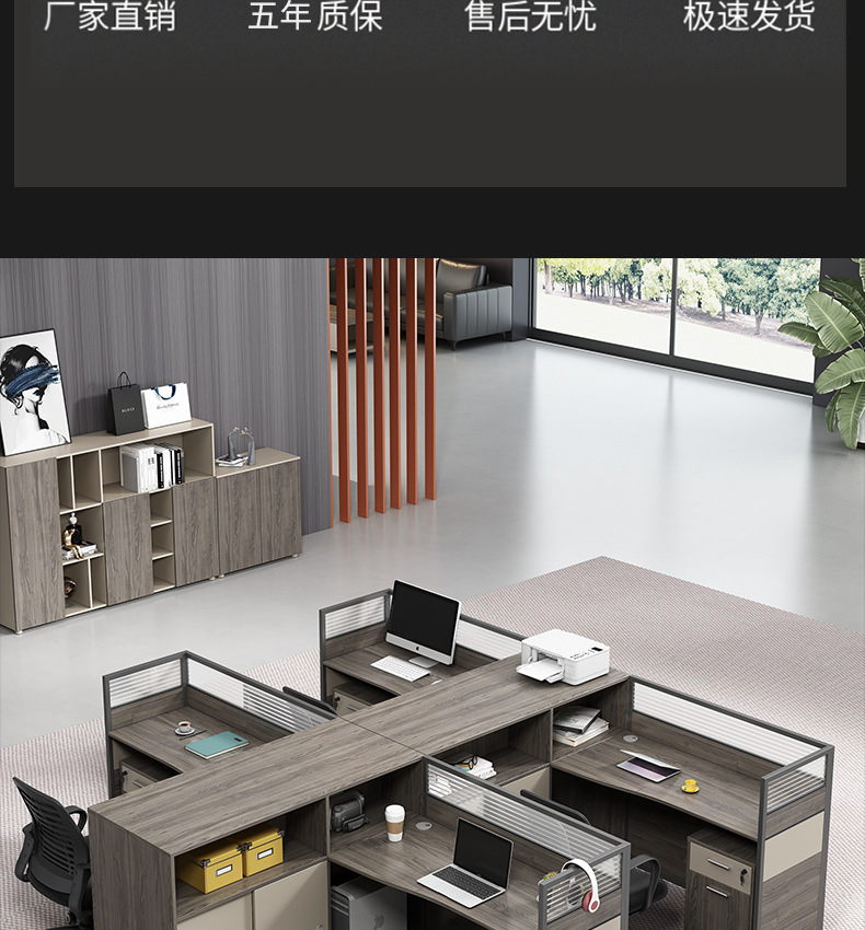 几何办公桌椅组合简约现代 2/4/6人位工位桌职员屏风桌员工桌家具