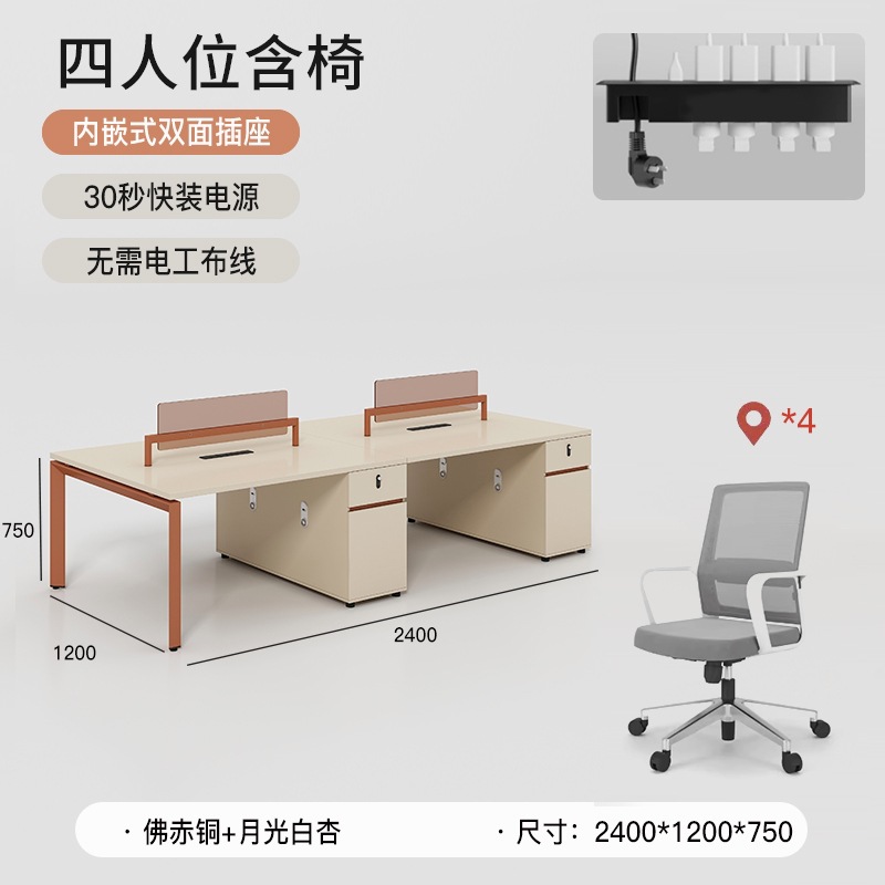 办公桌简约现代工位办公桌椅组合双4四6六人位员工办公家具职员桌 数量