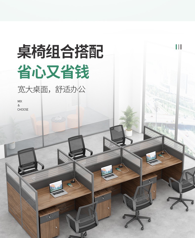办公桌椅组合套装6人卡座屏风双人员工财务办公桌子 办公室电脑桌