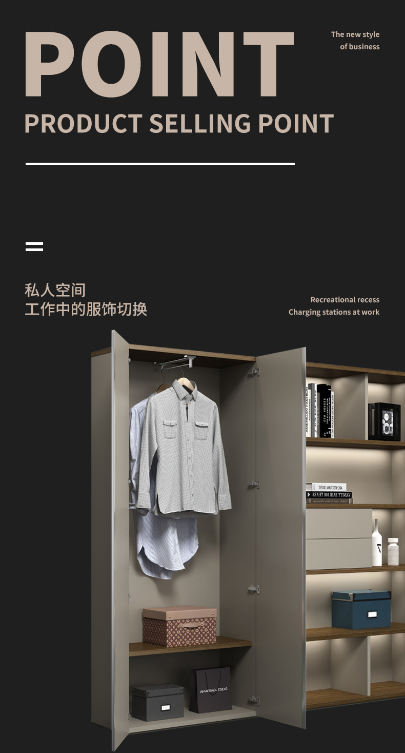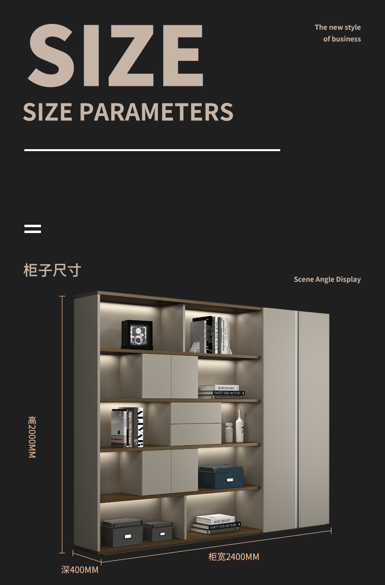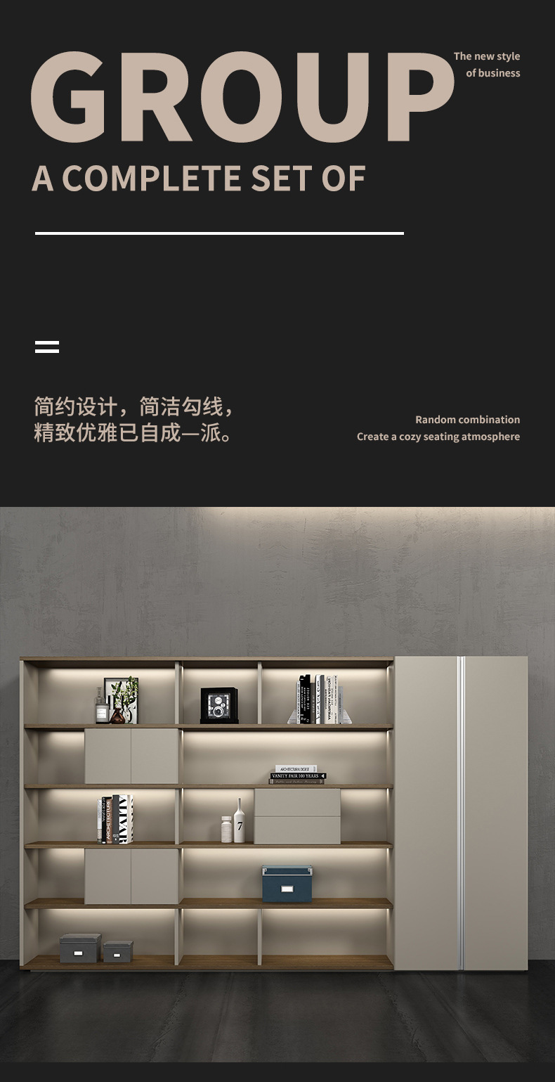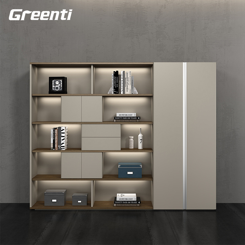 广东办公家具配套文件柜书柜灯带落地书橱老板室背景柜轻奢大气