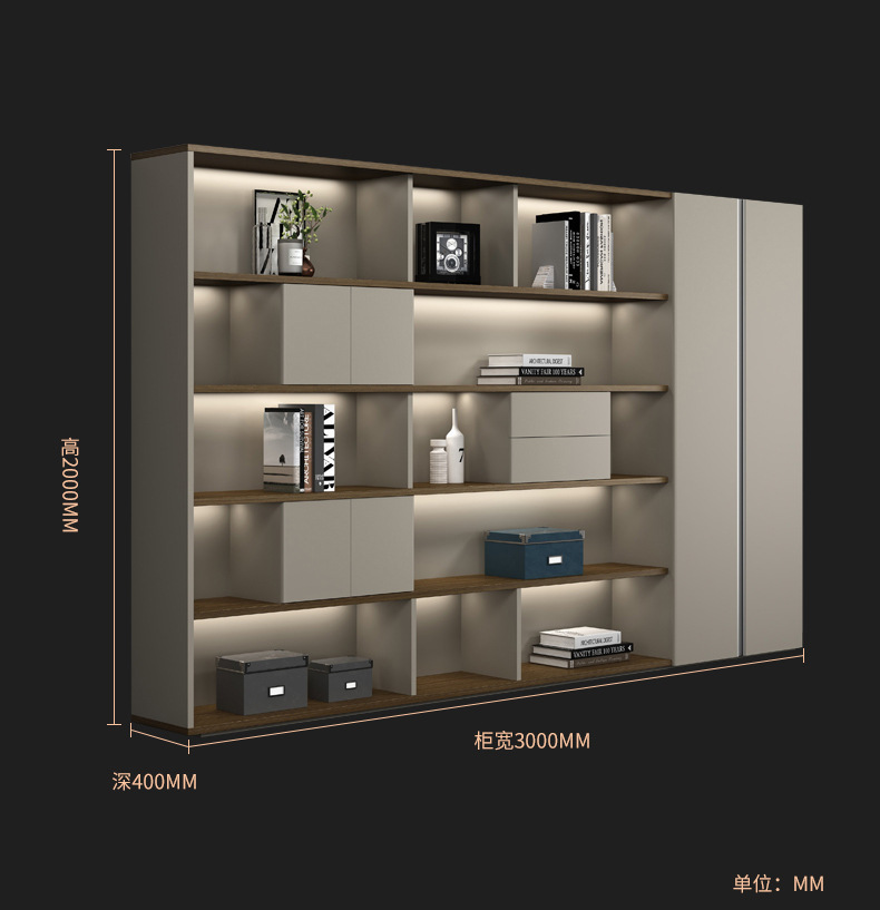 广东办公家具配套文件柜书柜灯带落地书橱老板室背景柜轻奢大气 数量