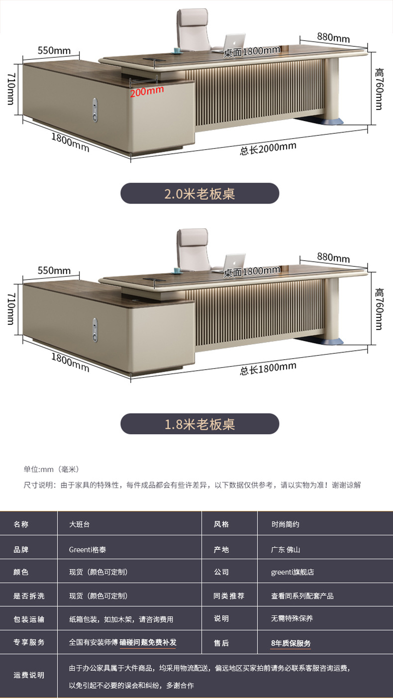 广州办公家具老板桌简约现代大班台总经理办公桌子办公室桌椅组合 数量