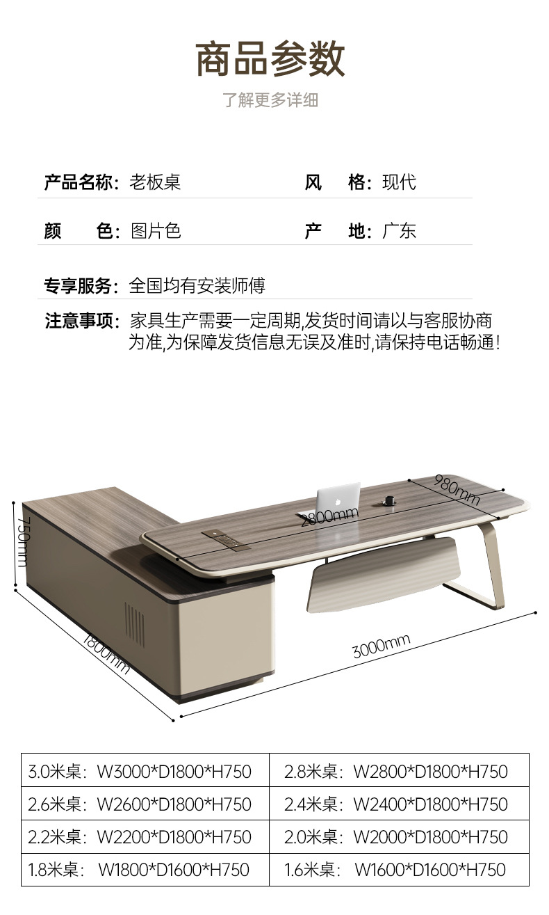 烤漆老板桌大班台总裁领导董事长经理办公室简约现代办公桌椅组合 数量