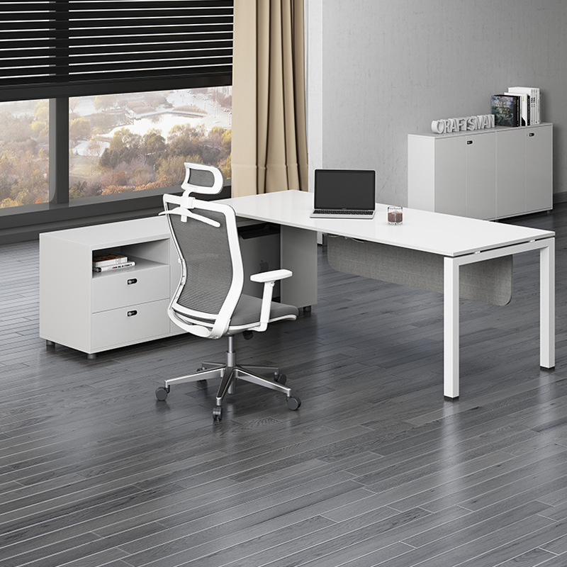 白色老板办公桌椅组合大班台总裁桌主单人管桌简约现代办公经理桌