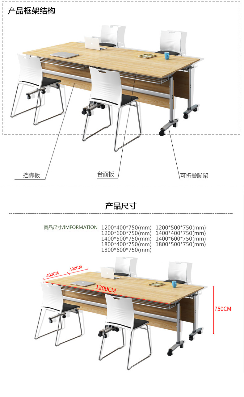 立典长条桌简约现代折叠会议桌员工条形桌培训桌椅方形学生桌培训