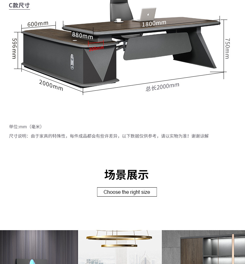 老板桌办公家具轻奢大气办公桌椅组合简约现代经理桌总裁桌大班台 数量