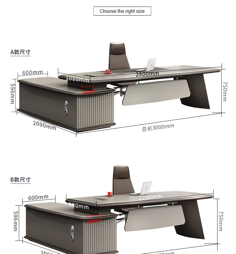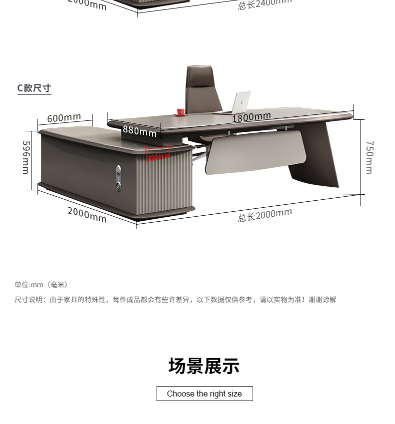 老板桌总裁桌简约现代经理办公家具大班台大气轻奢办公桌椅组合 数量