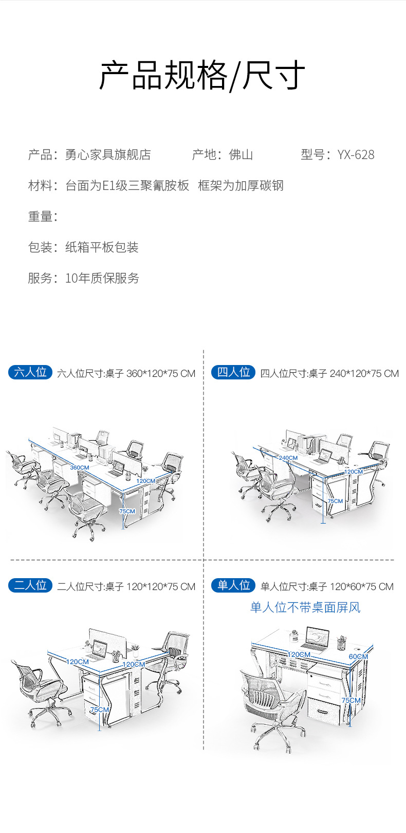职员办公桌椅组合简约现代4人位6员工电脑隔断屏风桌子办公室家具 数量