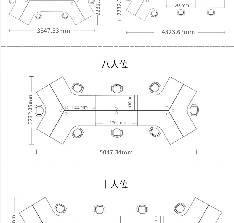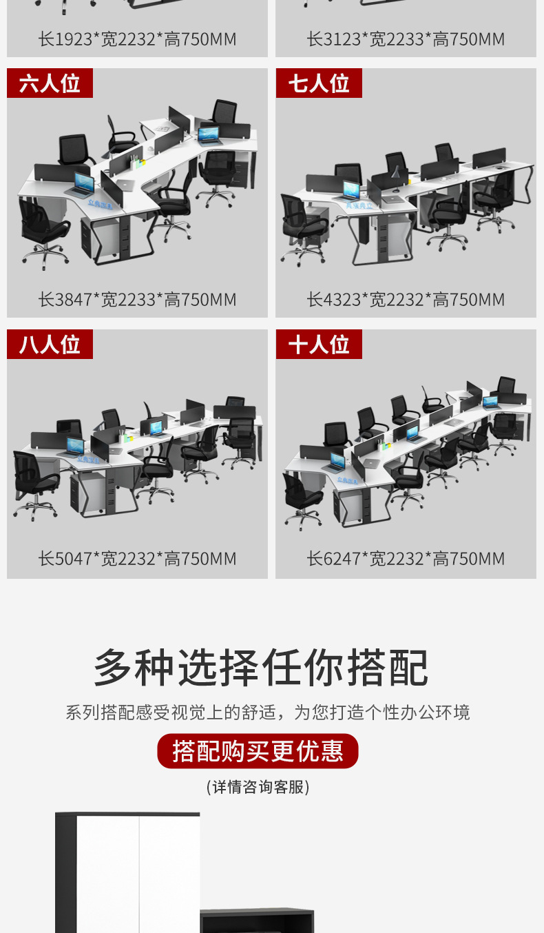 职员办公桌椅组合3/5/6/8人位简约现代屏风办公家具员工办工作桌 数量