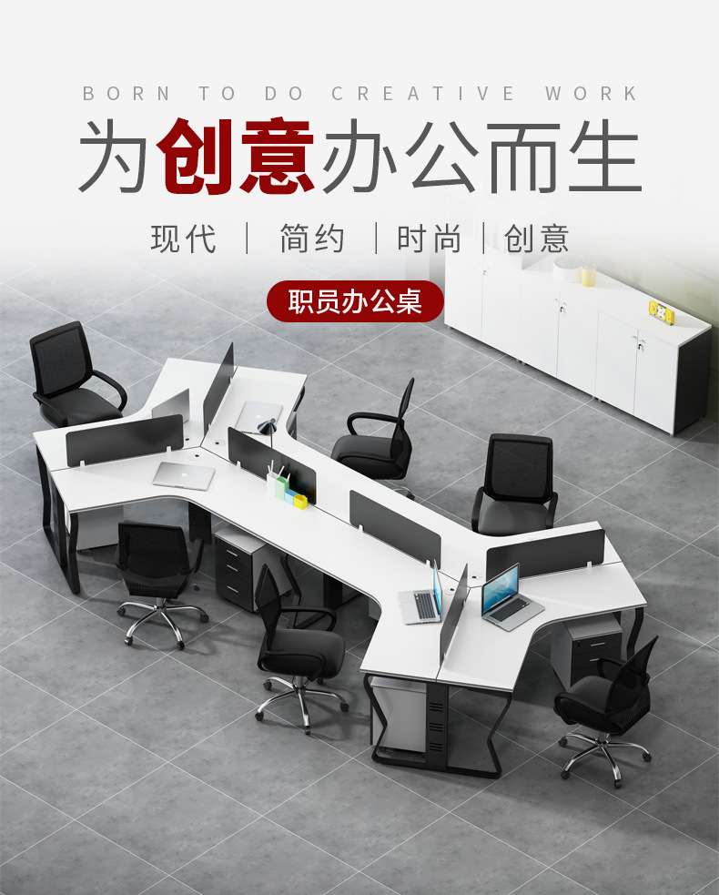 职员办公桌椅组合简约现代4人位6员工电脑隔断屏风桌子办公室家具