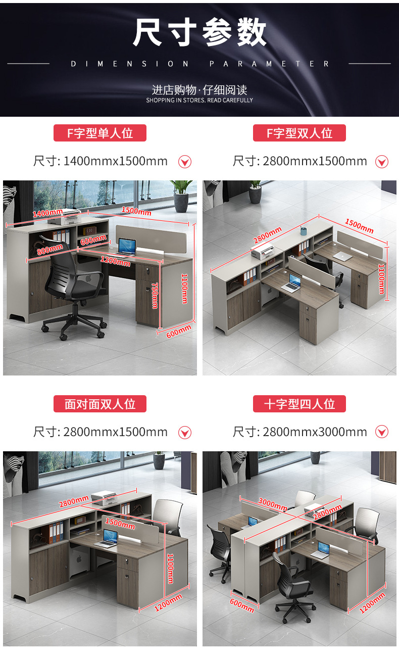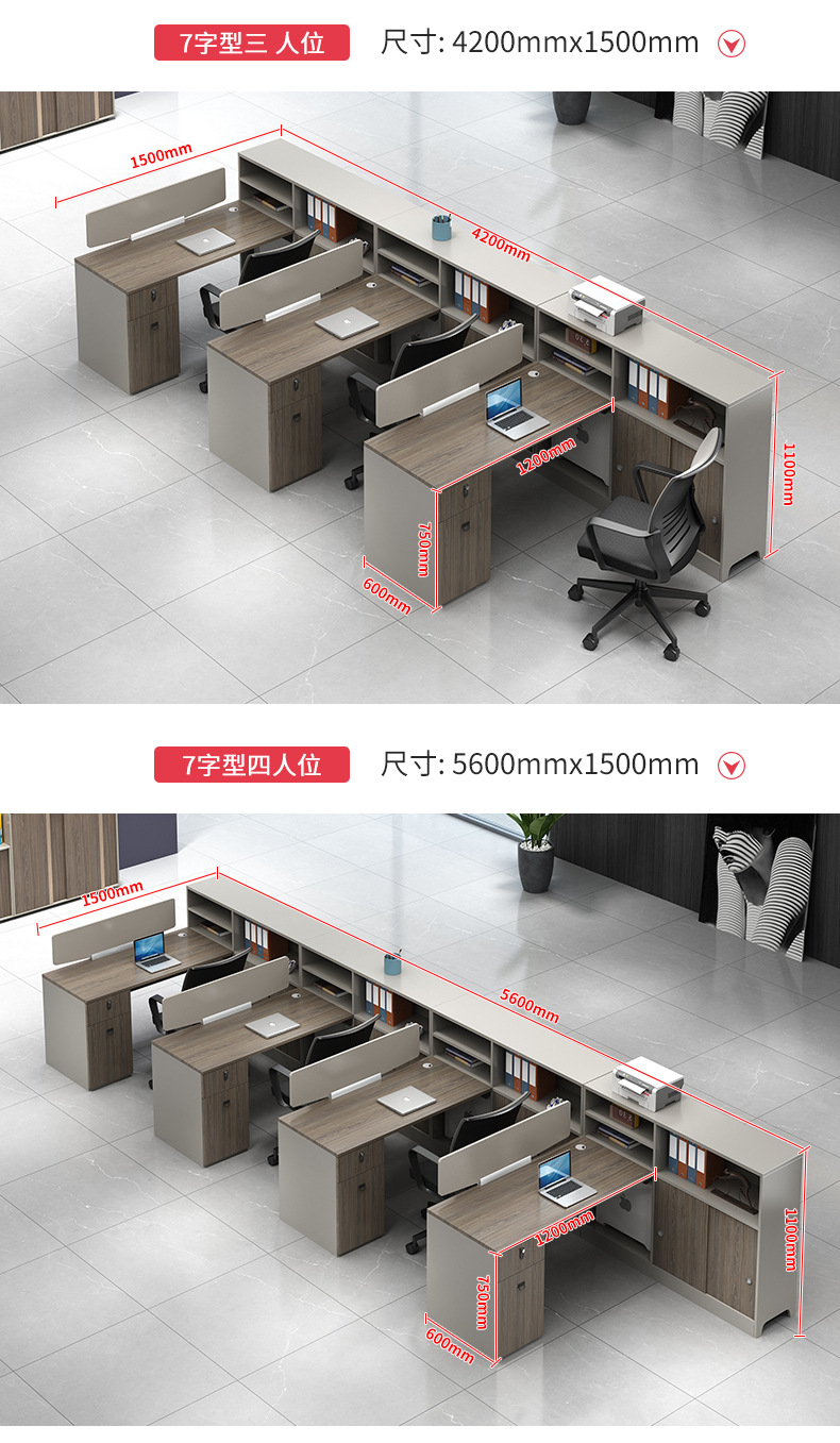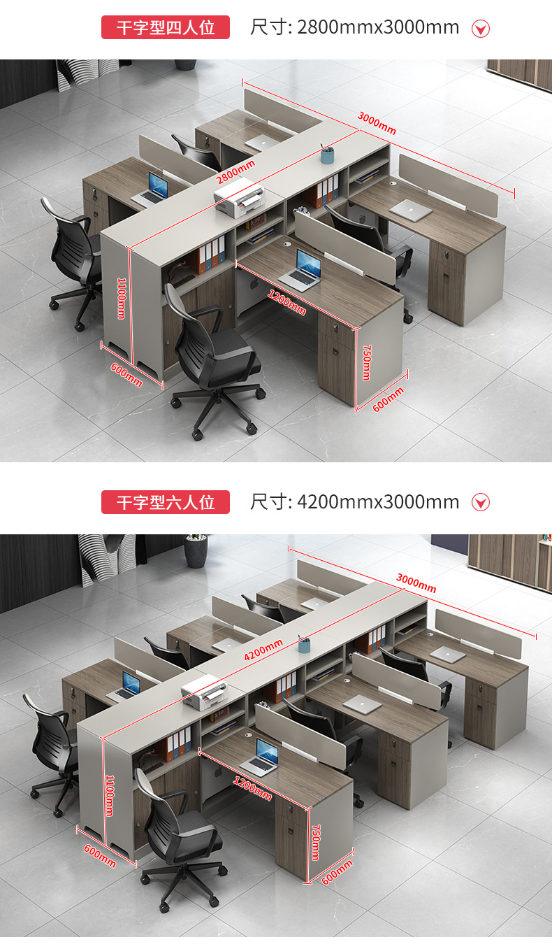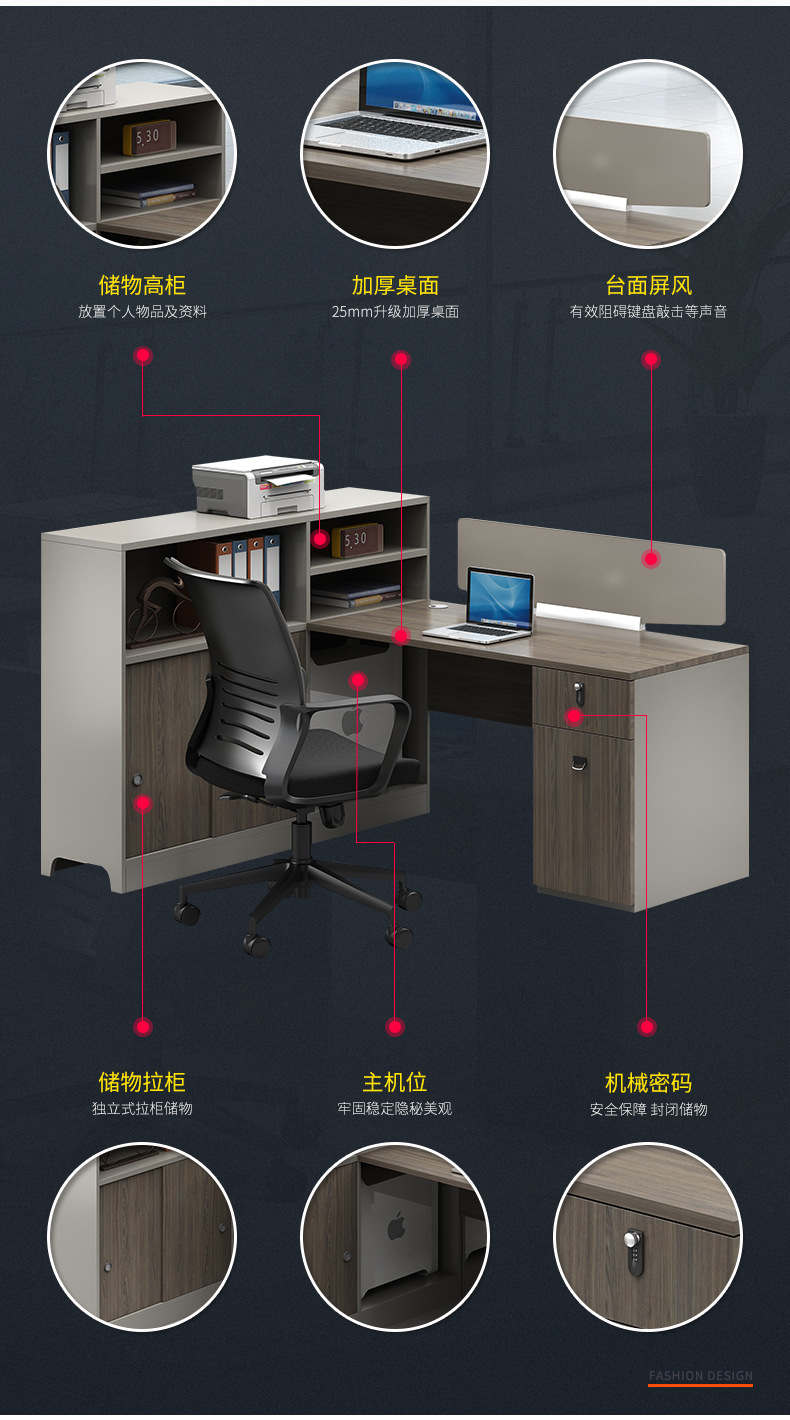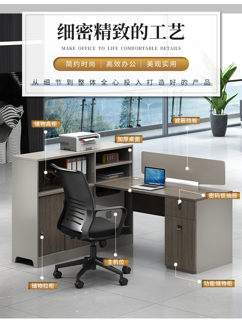 职员办公桌椅组合4/6人员工位隔断简约现代办公室卡座屏风办公桌 数量