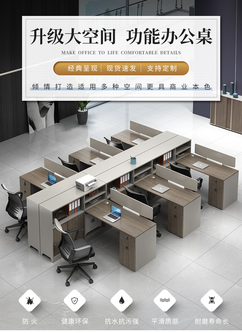 职员办公桌椅组合简约现代4人位6员工电脑隔断屏风桌子办公室家具