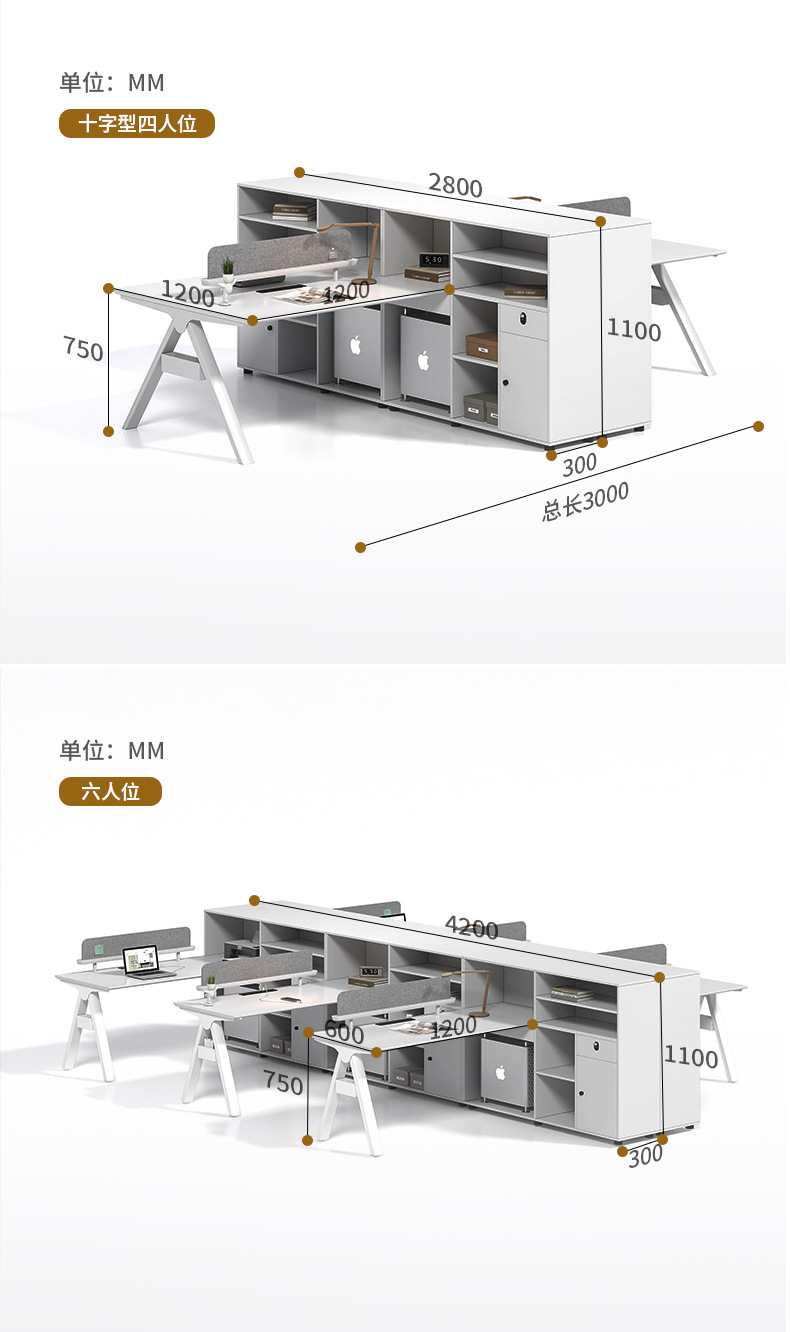 职员办公桌简约现代4人位6四人员工桌屏风桌椅组合工位桌办公家具