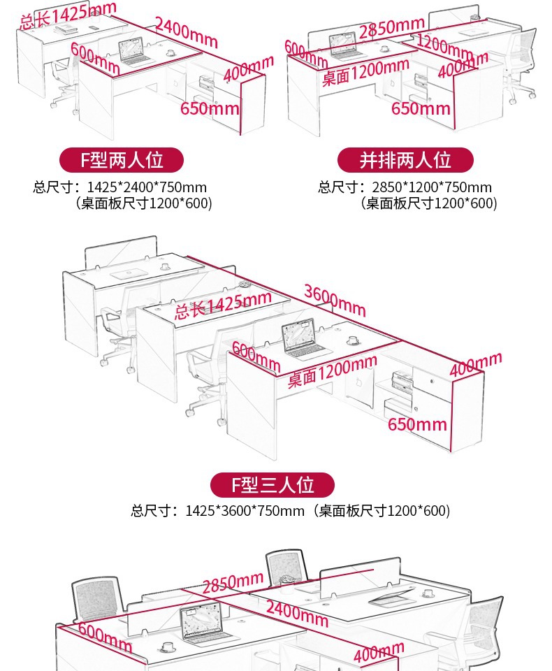 f型职员桌办公室办公桌椅组合财务桌简约现代员工桌单人2/4/8人位